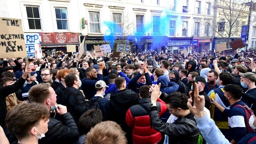 Según informó la BBC, el club londinense comenzó a preparar la documentación necesaria para desvincularse del flamante certamen. En el medio, cerca de 1000 hinchas de reunieron para protestar en Stamford Bridge antes del encuentro con el Brighton. Petr Čech, histórico ex arquero del Chelsea que actualmente trabaja en la institución, estuvo con los hinchas intentando calmar las aguas.
