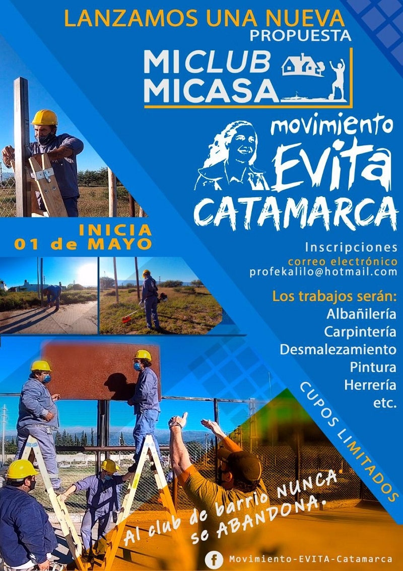Las instituciones que deseen formar parte de esta novedosa iniciativa pueden enviar un correo electrónico a [email protected] o bien en la página de Facebook Movimiento Evita Catamarca en donde recibirán asesoramiento de cómo pueden llevar adelante el proceso de inscripción.