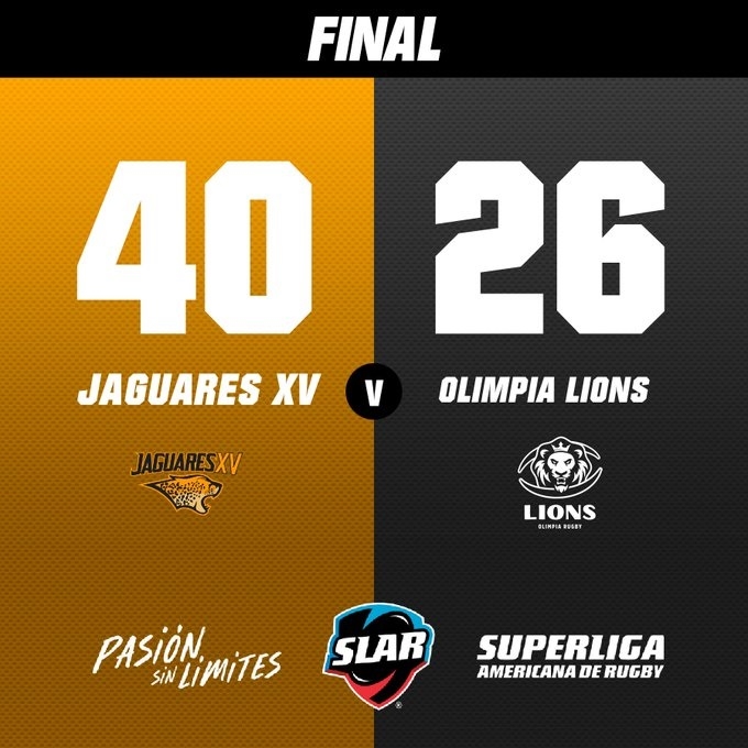 Jaguares XV continúa invicto en la Superliga Americana de Rugby al cabo de la novena fecha, ya que en la noche del lunes venció en Montevideo a Olimpia Lions de Paraguay por 40 a 26.