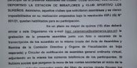 “Se deja expresamente aclarado que no podrán participar de la presente Asamblea, los clubes: Social, Cultural y Deportivo La Estación de Miraflores y Sportivo Los Sureños. Asimismo, aquellos clubes que solicitaron asambleas y se vieron imposibilitados en su realización, amparados bajo la resolución IGPJ (G) Nro. 001/21, quedan habilitados para su participación.