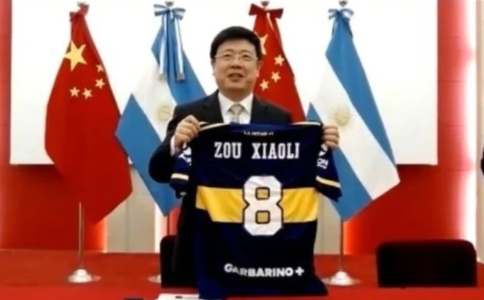 "Vamos a seguir trabajando día a día para fortalecer esta gran amistad que hemos iniciado. Boca Juniors los recibe con los brazos abiertos", escribió el presidente en Twitter sobre la charla con Zou Xiaoli, quien posó con una camiseta de Boca con su nombre y el número 8.