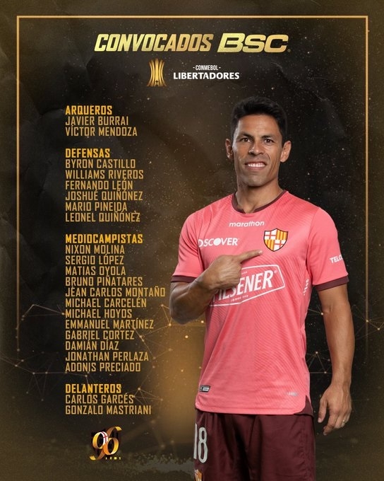 Barcelona de Ecuador: Javier Burrai; Byrion Castillo, Williams Riveros, Fernando León, Mario Pineida; Nixon Molina, Bruno ´Piñatares; Michael Hoyos, Damián Díaz, Emmanuel Martínez; Carlos Garcés. DT: Fabián Bustos.