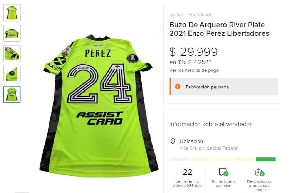 Se pagaron hasta 30 mil pesos por el buzo de arquero que el jugador de River, Enzo Pérez usó ante Santa Fe.