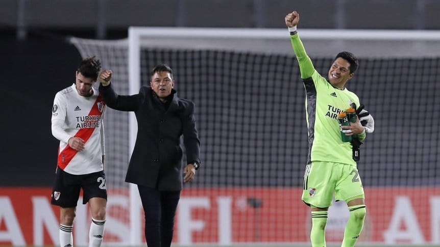 River consiguió un triunfo histórico: con Enzo Pérez en el arco y sin suplentes, en medio de un brote de coronavirus en el plantel, se impuso por 2-1 a Independiente Santa Fe, por Copa Libertadores. Luego de la victoria, Marcelo Gallardo, conmovido, elogió a sus jugadores.
