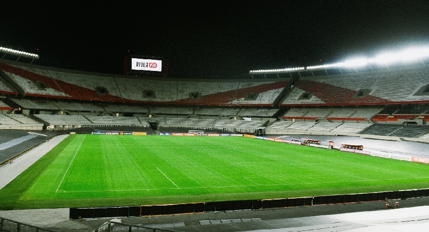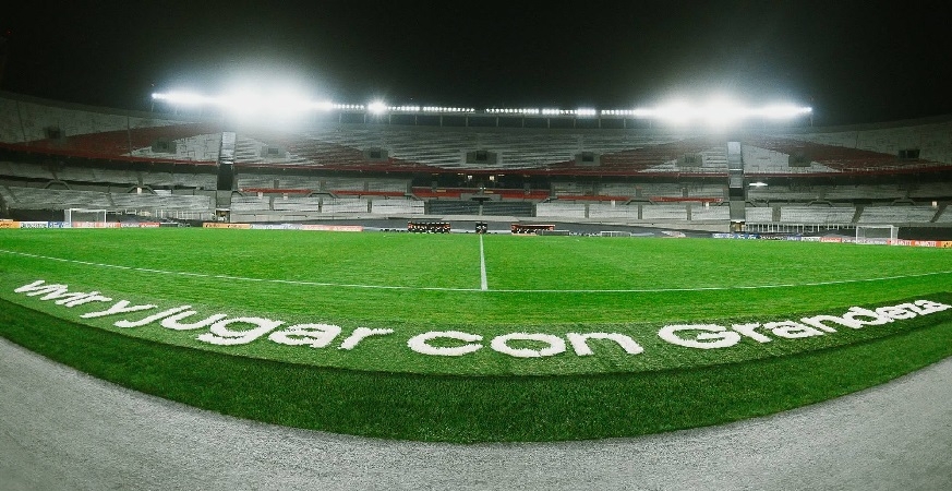 En ese sentido, este jueves el club Millonario reveló un nuevo detalle de la cancha a través de un simple tuit. En la red social del Pajarito, el community manager de la institución subió dos fotos del césped riverplatense donde se ve impregnado el nuevo slogan del club: "jugar y vivir con grandeza".