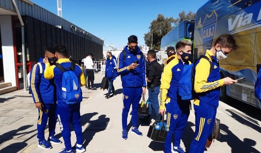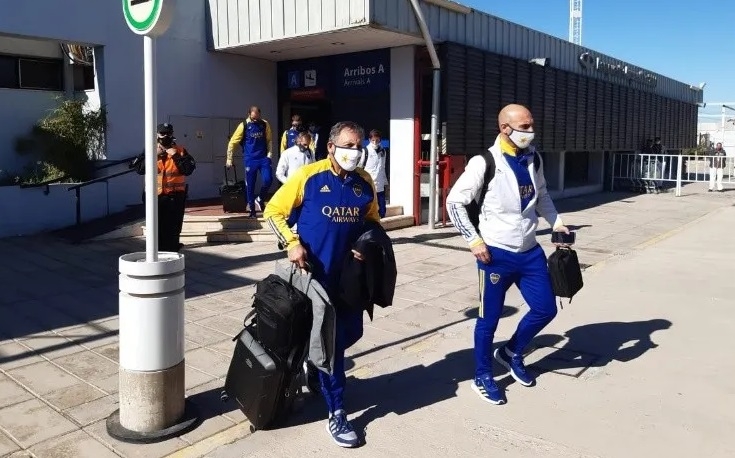 Minutos después de las 13 y cumpliendo con todos los protocolos establecidos para evitar contagios de coronavirus, Boca aterrizó en San Juan. A diferencia de visitas anteriores a la provincia en la que los hinchas colmaban aeropuerto y hotel, esta vez los simpatizantes escucharon el pedido del Gobierno y no llevaron a cabo el tradicional recibimiento al equipo.