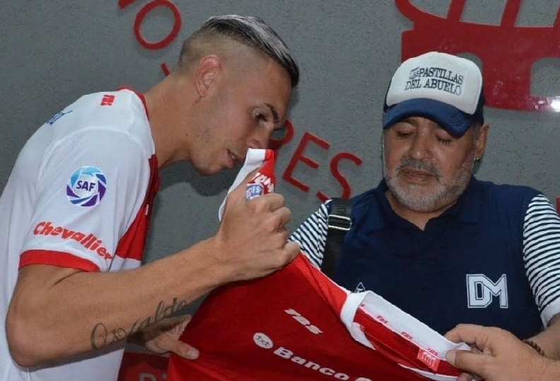 "El grandote ese, cómo va... Es un animal, viejo. La verdad, felicitaciones", había expresado el Diez luego de un empate (por 1-1) entre el Globo y Gimnasia, en el Palacio Ducó, en enero de 2020.