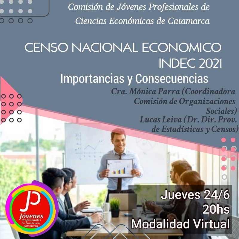 La Liga Chacarera de Fútbol invita a todos sus clubes afiliados y al conjunto de instituciones deportivas de la Provincia a participar de una charla virtual en el día de hoy jueves 24/6 a las 20 hs., en el marco del convenio firmado entre la Secretaría de Deporte, Consejo de Ciencias Económicas y nuestra entidad madre. El tema a tratar será "Censo Nacional Económico 2021 -Importancia y Consecuencias"