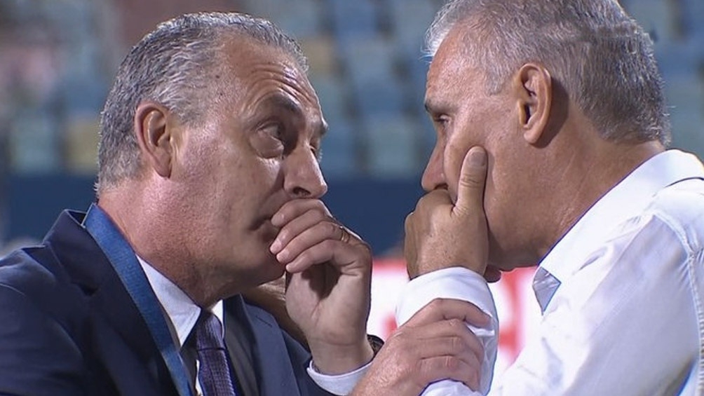 El entrenador de Brasil se vio sorprendido y se fundió en un abrazo largo con el argentino que no se esperó el halago.