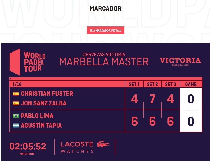 Esto es así, porque la estructura del Cervezas Victoria Marbella Master es un poco diferente a los torneos celebrados esta temporada. El hecho de tratarse de un torneo Máster hace que la jornada de dieciseisavos se dispute en 2 jornadas, martes y miércoles.