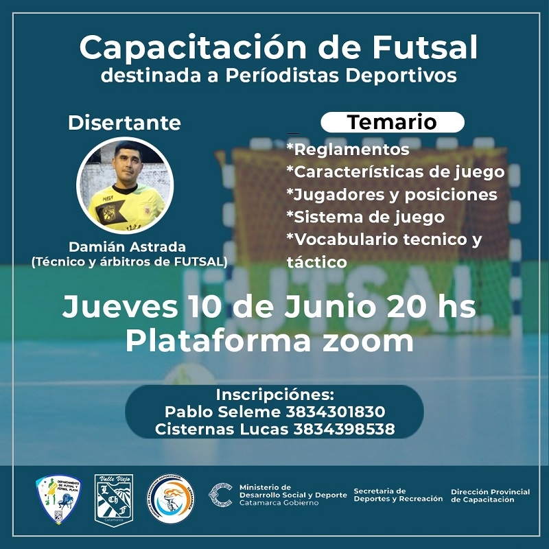 La misma será convocada para todos los periodistas deportivos de la provincia para realizar una capacitación exclusiva relacionada a la disciplina Futsal, a través de plataforma zoom este jueves, a partir de las 22 horas.