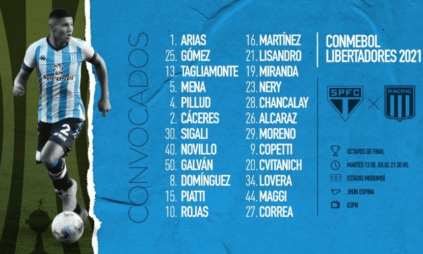 Los posibles once de Racing ante San Pablo