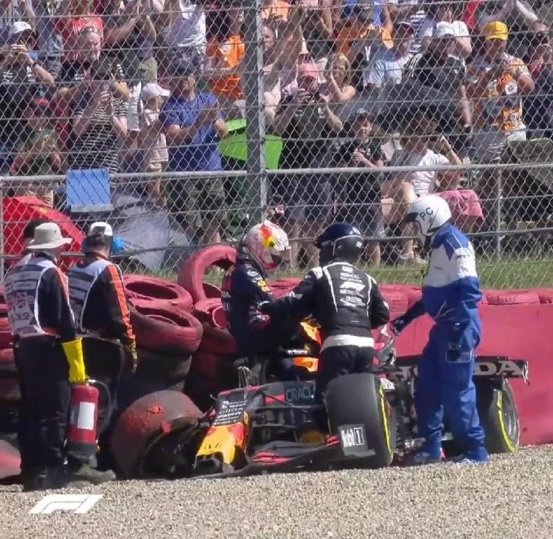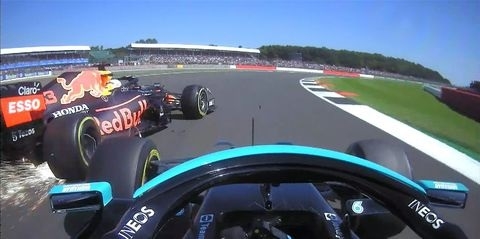 El incidente aconteció en la primera vuelta, después de que Hamilton arrancase mejor que Verstappen e intentase meterle el coche en varias curvas. El líder del mundial se defendió hasta llegar a Copse. Allí Hamilton se lo llevó por delante y lo estrelló contra el muro, destrozando el Red Bull y saliendo él, una vez más, intacto.