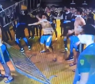 Según trascendió y se pudo observar en videos del conato, los hechos se desencadenaron cuando los futbolistas del Xeneize intentaron ingresar por la fuerza al vestuario del Galo, arrojando vallas y diferentes objetos.
