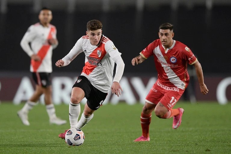 River Plate: Franco Armani; Gonzalo Montiel, Paulo Díaz, Héctor Martínez, Fabrizio Angileri; Agustín Palavecino, Enzo Pérez, Nicolás De La Cruz; Julián Álvarez, Braian Romero y Matías Suárez. DT: Marcelo Gallardo.