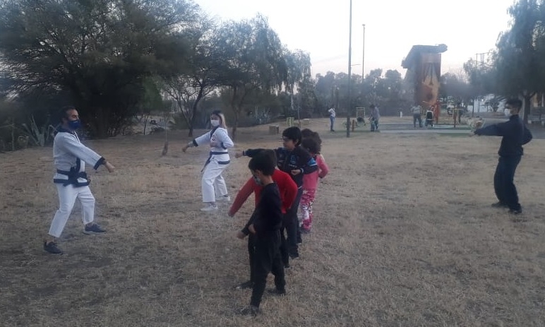 Por otro lado, desde la Academia JUMEOG-DO, también; se dicta una clase presencial, por pedido de los niños padres y practicantes avanzados, los días viernes con no más de 10 chicos, para respetar todos los protocolos de cuidado contra el Covid-19. Esta clase presencial será dada por los alumnos, cintos negros, Juan Pellegrini y Milagros Campo Luna.