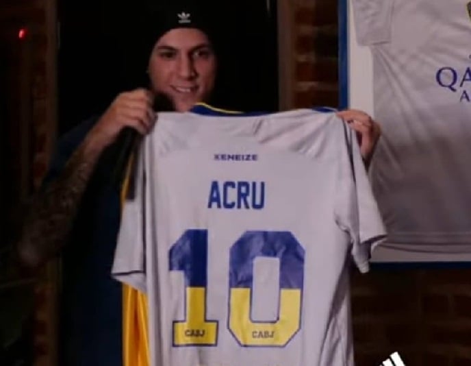 Mientras tanto, el Xeneize presentó este jueves por la noche una nueva camiseta alternativa, que utilizará en su visita a la T, a través de una transmisión en vivo. Junto a los streamers Luquitas Rodríguez, Joaco López y Goncho Banzas, y la presencia del rapero Acru, el Club de La Ribera dio a conocer una nueva casaca, blanca con trazos grises. Hubo una con la diez y el nombre del músico, y otra con la nueve y el nombre de Hasbulla, un ruso que es viral en las redes sociales.