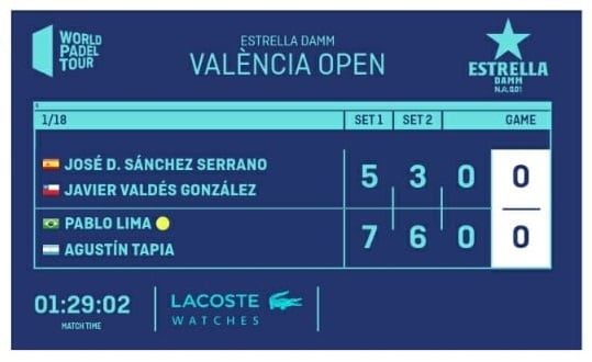 La de Valencia es la 7ma. cita del World Padel Tiur (WPT), donde hasta el presete la dupla Tapia/Lima alcanzaron una final (en Marbella), 2 semifinales (en Madrid y Vigo), 1 Cuartos (en Alicante) y 2 Octavos (en Santander y el último en Valladolid).