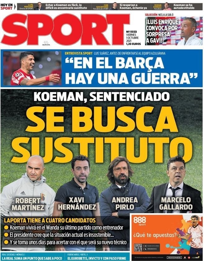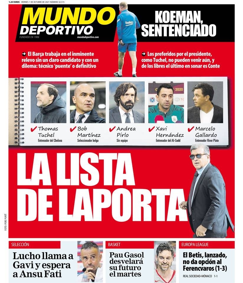 Hay dos nombres más junto al de Gallardo para ocupar el puesto de Koeman: Bob Martínez, que está al frente de la selección de Bélgica y debe disputar la UEFA Nations League, así que su llegada podría ser recién en dos semanas. Y el otro es Andrea Pirlo, por su parte está sin trabajo luego de finalizar su ciclo al frente de la Juventus la temporada pasada, donde ganó la Copa y Supercopa de Italia pero no pudo con Porto en la Champions y quedó lejos en la Serie A.