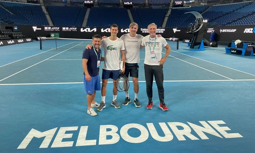 El balcánico peloteó en la pista Rod Laver Arena, escenario en el que levantó hasta nueve títulos de Grand Slam, junto a su entrenador Goran Ivanisevic, según unas imágenes emitidas hoy por el canal público ABC.