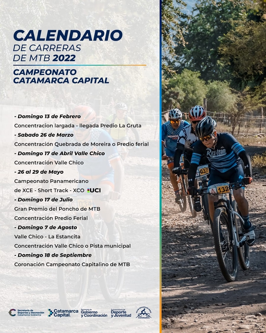 Con tradicionales y atractivas pruebas, el inicio de la temporada se prevé para el 13 de febrero en el caso del MTB, con el desafiante circuito de “La Gruta” como escenario de la primera carrera; mientras que el ciclismo de ruta abrirá el 27 de febrero con la clásica “Trepada a El Rodeo”.