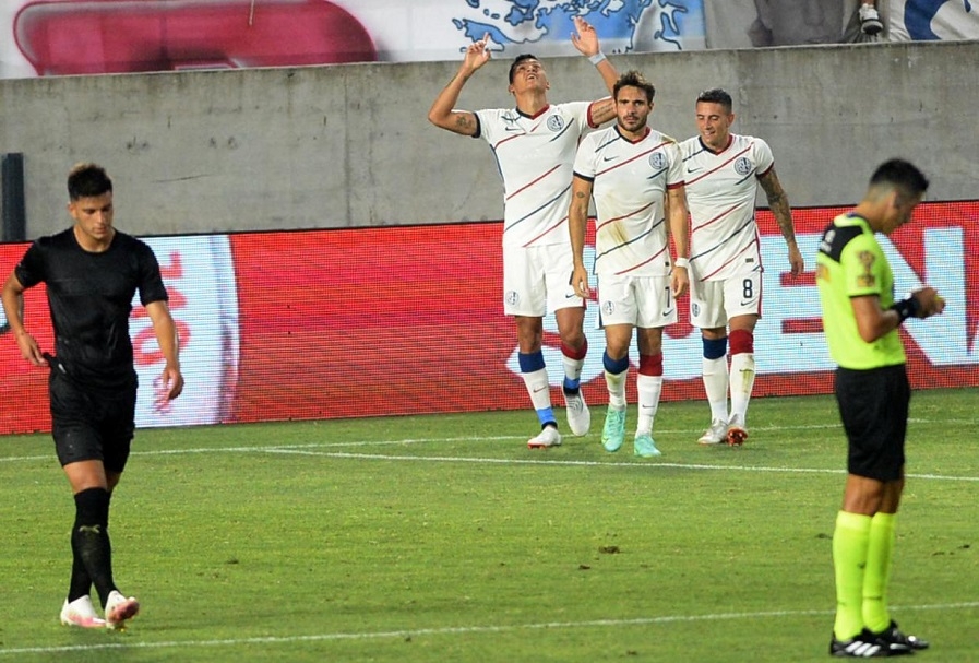 Del otro lado, los de Boedo se resguardaron en defensa y golpearon en la única acción de peligro. A los 44 minutos de la parte inicial, Gabriel Rojas asistió a Marcelo Herrera para el primer gol del partido. A continuación, el arquero suplente del Ciclón se fue expulsado por un festejo desmedido.