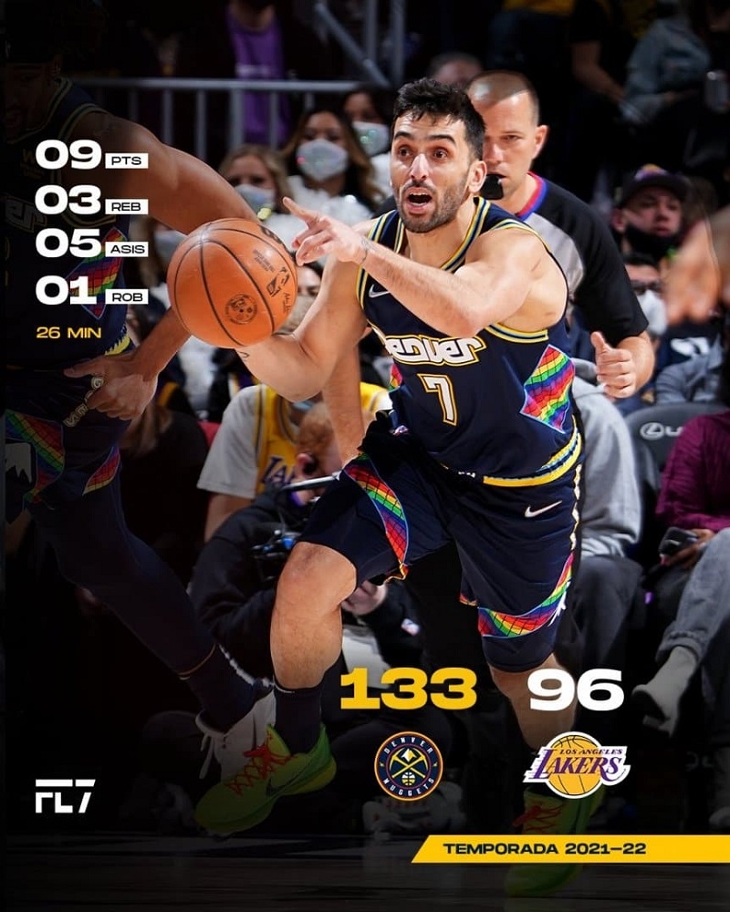 Denver Nuggets se impuso por paliza a Los Angeles Lakers de LeBron James: ganaron por 133-96, en condición de local, en una nueva jornada de la NBA. Y Facundo Campazzo volvió a hacer de las suyas: ¡Tiró un caño!