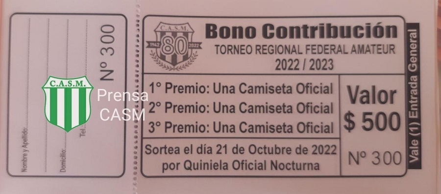 Vale destacar, que todos aquellos bonos comprados no premiados, se podrán canjear por una entrada para el primer partido de local ante el Club Pedro Cano de Recreo, válido por la 2da fecha del certamen. Las damas, tendrán acceso a la entrada y al sector platea.