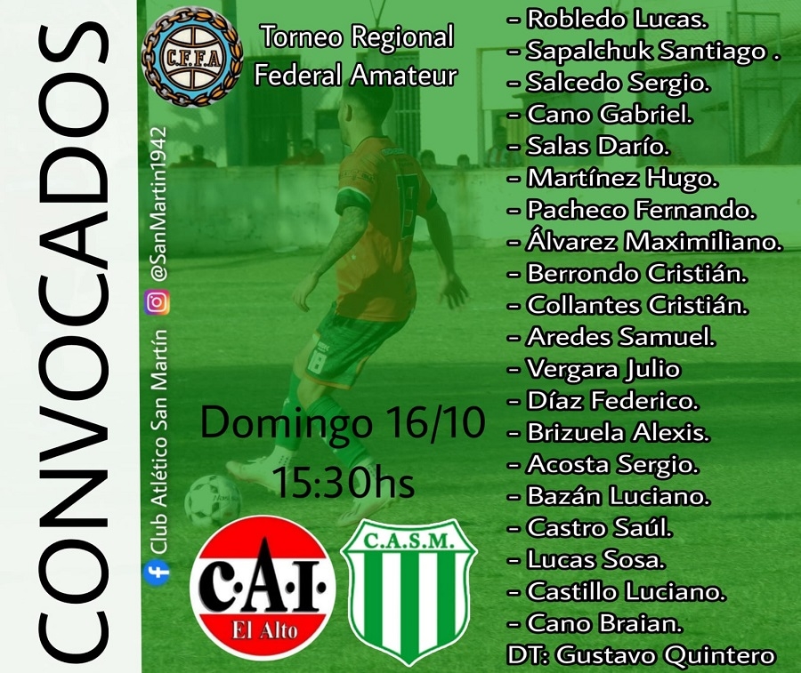 15.30 hs., Zona 6: CAI El Alto vs. San Martín. Árbitros: Héctor Lingua, Pablo Figueroa y Cristian López (Liga Tinogasta).