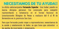 Por este logro Pablo Tapia Garzón y Leticia A. Bazán, presidente y secretaria, respectivamente de la ACLOP, se agradeció la difusión de este logro para el deporte catamarqueño, solicitando apoyo y colaboración para la atleta Fernanda Espeche “ya que es docente de nivel primario y no cuenta con los recursos para poder solventarse todos los gastos que genera dicha participación en representación de nuestra Provincia”.