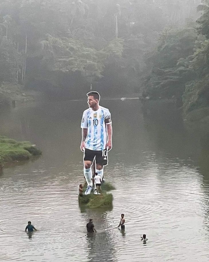 En el pequeño pueblo de Pullavoor, en India, los locales pusieron una gigantografía de Messi en medio del río", escribió el usuario de Twitter en su cuenta. La mencionada localidad está ubicado dentro del estado de Kerala.