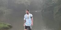 En las últimas horas se viralizó en las redes una llamativa imagen que muestra una gigantografía de Messi con la 10 de la selección y en el medio de un río de India. La impactante foto, compartida por el usuario @periodistan_ en su cuenta, se lo observa a un Lionel gigante posando sobre una pequeña isla dentro del río.