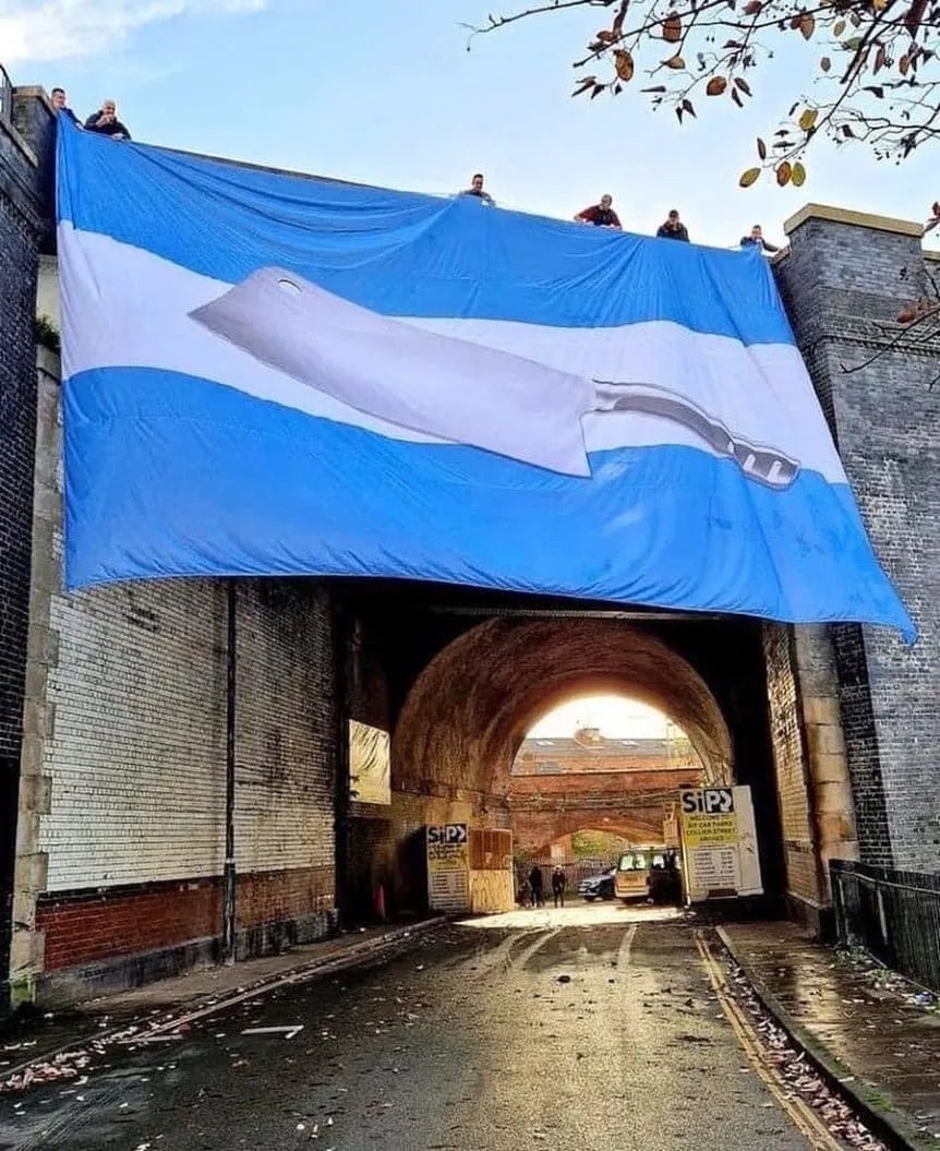 Lisandro Martínez reaccionó en sus redes a la tremenda bandera que le hicieron: "Increíble", escribió en una historia de Instagram. Sin embargo, las autoridades de Manchester United prohibieron que sea desplegada en el Old Trafford. Según medios de Inglaterra, se debe a que "hay un arma" en la bandera, en referencia a la cuchilla de carnicero.
