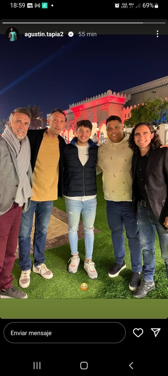 Claro que su presencia no es una más ni pasa desapercibida, lo que le ha valido ser reconocido y compartir momentos con notables figuras del fútbol mundial, como son los argentinos Gabriel Omar Batistuta y Pablo Sorín, el brasileño Ronaldo Luís Nazário de Lima, o el italiano Marco Materassi, junto a quienes posteó una foto de estas últimas horas en Doha.