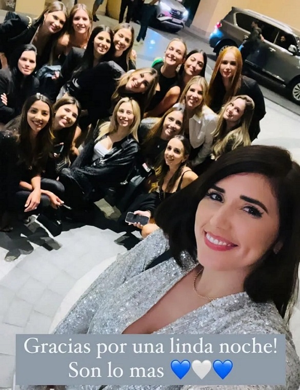 "Gracias por una linda noche, son lo más", escribió por ejemplo Mandinha Martínez, la esposa del Dibu, mientras que varias de las otras mujeres compartieron las fotos en sus cuentas de Instagram con corazones celestes y blancos o la bandera de Argentina.
