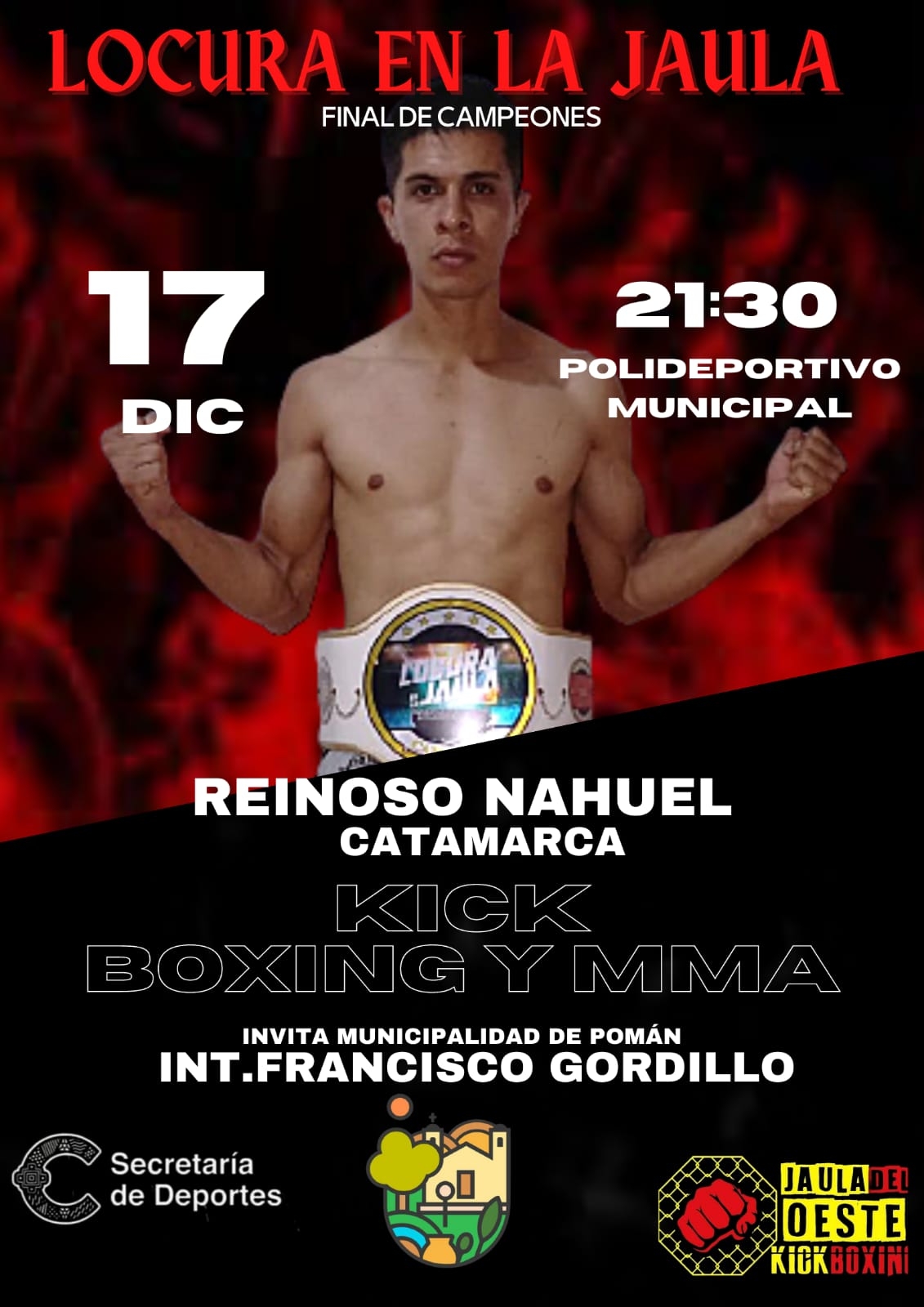 Durante la velada en el polideportivo de Pomán se llevara a cabo un maravilloso espectáculo donde los luchadores van a dar lo mejor de cada uno. Dichos peleadores vienen entrenando muy fuerte para ponerse a prueba una vez más y demostrar el trabajo que realizan en sus entrenamientos para llegar de la mejor manera.