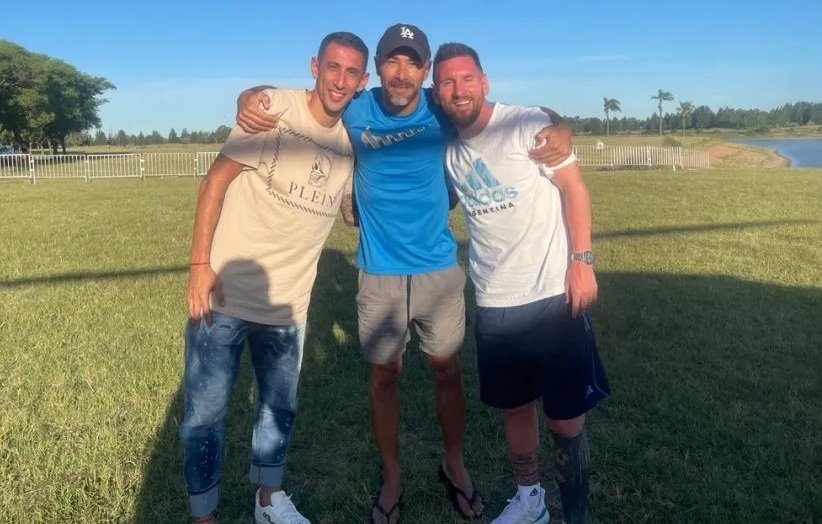 Lionel Messi y Ángel Di María se encontraron con el Kily González, exfutbolista de la Selección Argentina y exentrenador de Rosario Central, quien vive en el country donde descansarán los flamantes campeones del mundo.