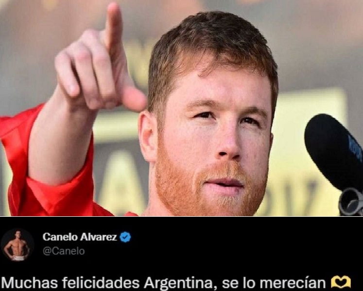 Saúl "Canelo" Álvarez no quiso estar ausente en las felicitaciones por la consagración de la Selección argentina en el Mundial de Qatar y lo hizo mediante un posteo en sus redes sociales. El boxeador, que apuntó contra Lionel Messi por un video que se viralizó luego del partido con México, reconoció al equipo albiceleste con un escueto mensaje.