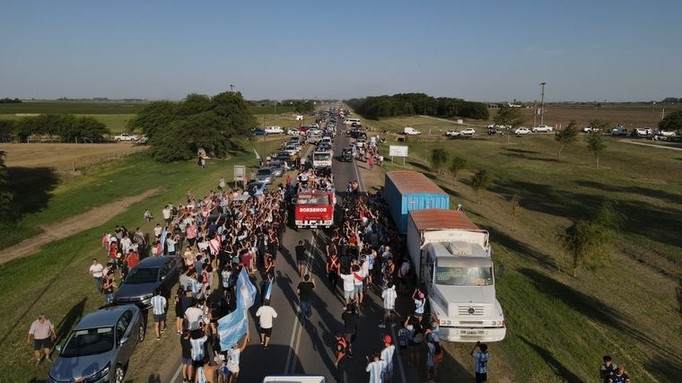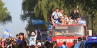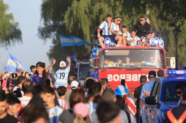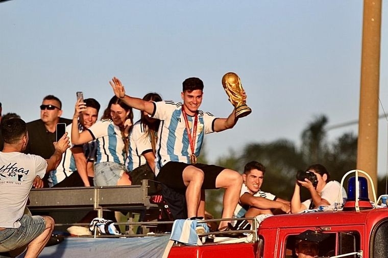 Se estima que cerca de 10 mil personas de las diferentes localidades cordobesas se acercaron para homenajear al joven delantero, quien paseó en autobomba (junto a toda su familia) por las calles, luciendo la camiseta Albiceleste y la medalla en el pecho. Además, mostró una réplica del trofeo.
