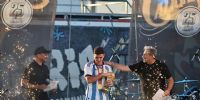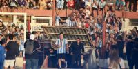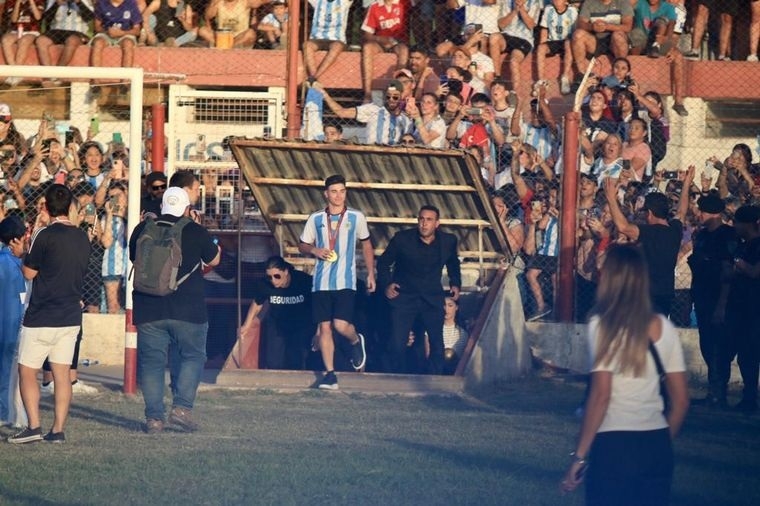 Una vez que llegó al estadio, el joven delantero del Manchester City saludó a todos los chicos que lo esperaban en el campo de juego. Además, paseó con la Copa saludando a las tribunas de la cancha que, a partir de ahora, llevará su nombre. "¡Dale, campeón!", cantaron eufóricos desde la tribuna.