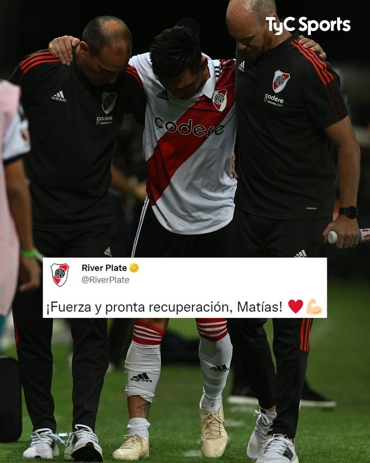 El volante central de 29 años, que había regresado a la entidad de Núñez para este ciclo proveniente de Rayados de Monterrey, se retiró de la cancha directamente hacia el vestuario sin poder pisar como consecuencia de una falta desde atrás por parte del rival que llegó a destiempo en la marca. Los médicos debieron ingresar de inmediato para analizar el tobillo derecho del futbolista, que ofreció visibles muestras de dolor en su salida del campo.