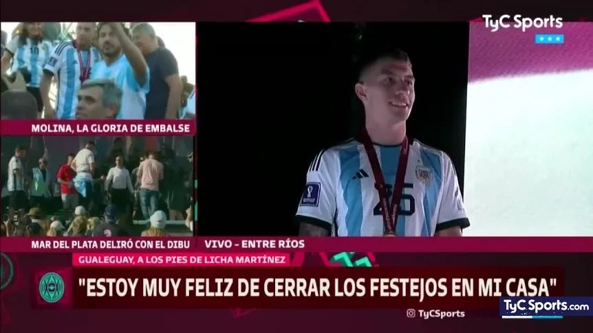 Los futbolistas de la Selección Argentina siguen de fiesta. Tras la conquista del Mundial de Qatar 2022, los 26 guerreros que lograron bordar la tercera estrella en el manto sagrado de la Albiceleste regresaron al país, poco a poco cada uno fue arribando a sus respectivaas ciudades natales y hoy le tocó a Lisandro Martínez, quien ante un Gualeguay que lo recibió como un héroe no pudo evitar las lágrimas.