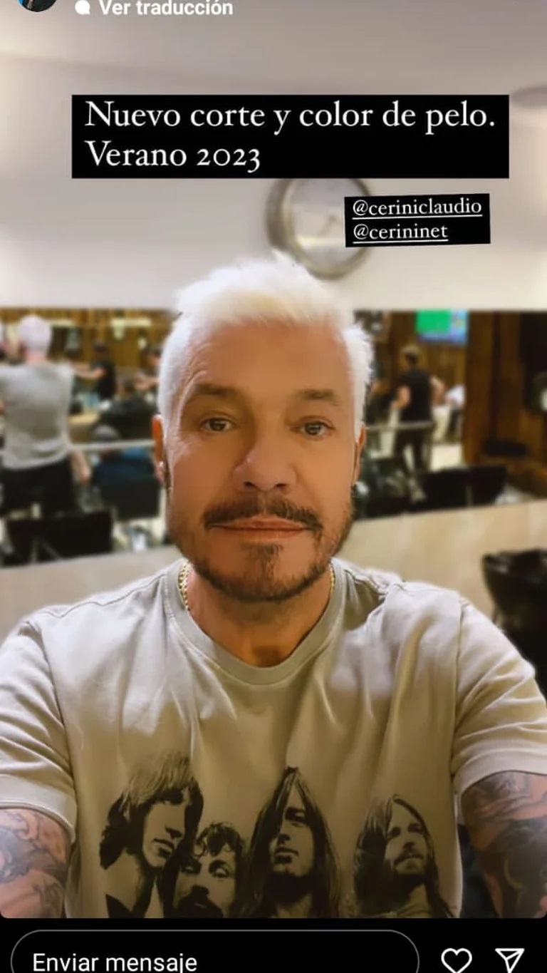 Tinelli habló con Ángel de Brito, para su programa LAM, a la salida de la peluquería en la queel conductor se tiño el pelo, completamente platinado, y ya sin los colores albicelestes, Marcelo contó cómo fue que tomó esta decisión. “Lo que habíamos quedado con Lorenzo cuando estuvimos en Qatar era que primero nos íbamos a hacer una bandera argentina en el pelo y apenas llegamos la hicimos. Después yo me quería poner este color platinado y ahora se viene la segunda parte de la promesa, que es el tatuaje en el pecho, que va a tener de un lado la bandera argentina y del otro lado, las caras de Lionel Messi y de Diego Maradona”, reveló todavía conmovido por el triunfo de la Selección Nacional.