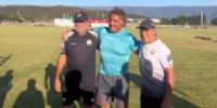 El mismo mediante las invitado por el Diputado Enrique Cesarini y del área de Recreacion y Deportes, compartió el entrenamiento de los "Awkas" equipo de los Internos del Servicio Penitenciario, en la previa del 2° Seven de los Valientes organizado en el interior del Penal.