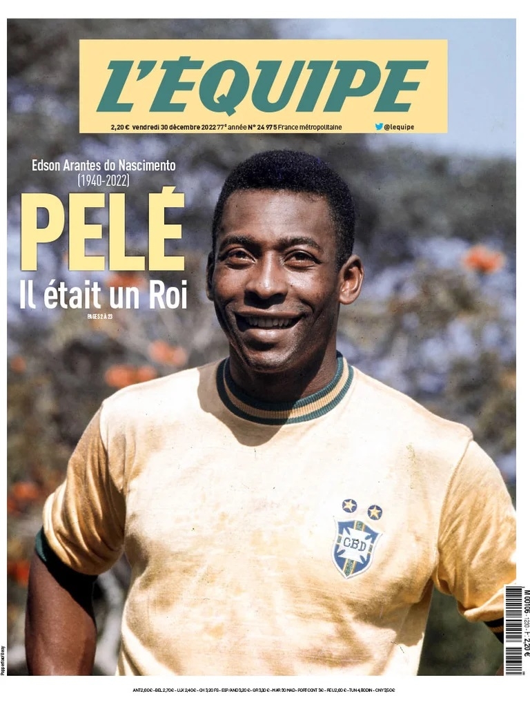 Alejado de las polémicas, L’Équipe eligió una decisión editorial que alteró sus orígenes. El diario francés cambió los colores rojo y blanco, característicos de la marca, para modificarlos por el amarillo y el verde, que distinguen la camiseta de Brasil. “Pelé, él era un Rey”, escribió con la presencia solitaria del delantero vistiendo la casaca del elenco latinoamericano, donde anotó 77 goles en 92 partidos.