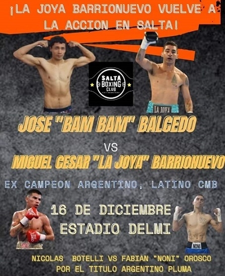 Balcedo, de 33 años de edad, es profesional desde 2017 y este 2022 hizo tres combates con dos victorias ante Iván Aibar por PP6, en setiembre, y ante Diego Cruz por PP4, en mayo, las dos en suelo salteño, y perdió con Eduardo Zuleta por KOT7, en enero en Chile.
