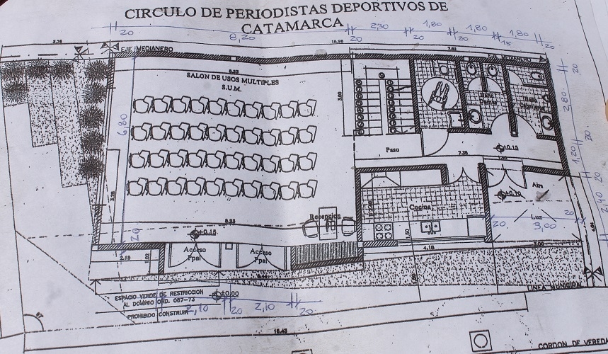 Los trabajos iniciales se realizan sobre una superficie de 6,80 Mts. de ancho por 8,20 Mts. de largo, que incluyen los espacios que en el futuro serán destinados a un salón multiuso, tres baños, uno de ellos destinado a discapacitados, la cocina y un patio interior, además de un lugar de paso o escaleras hacia una segunda planta, donde funcionarán las oficinas y áreas administrativas de la entidad.