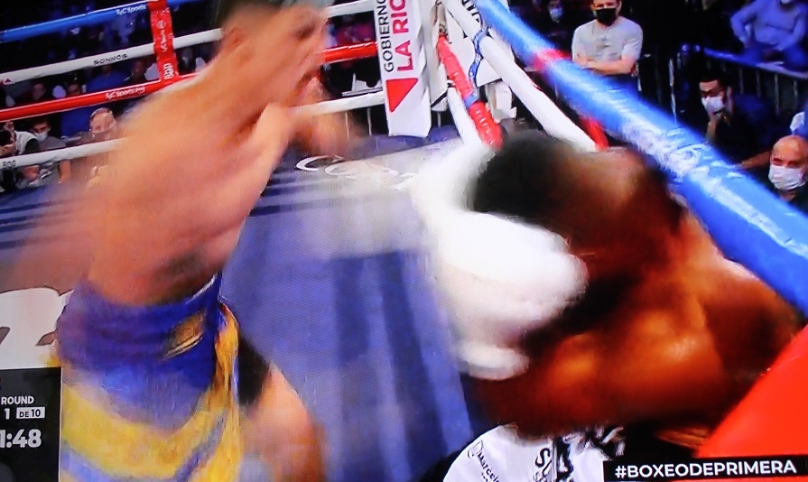 La pelea fue sumamente breve. Todo lo que se vio, fue del joven invicto catamarqueño frente a un brasileño que ni se pudo acomodar. Ni bien sonó la campana, Corzo demostró por qué es otra de las grandes apariciones nacionales. El ex integrante de la selección argentina y actual N° 2 del ranking argentino mediopesado salió a arrollar a su rival. Rápidamente, el apodado “Pacman” lo llevó contra las cuerdas donde lo desbordó y conectó a placer. Fueron profundas combinaciones de derechas e izquierdas cruzadas y ascendentes al rostro y en gancho a las costillas de un Dos Santos conmovido, que recibía todo sin reacción sobre las sogas. Por eso, el árbitro Julio Gómez realizó una cuenta de pie. Y al ver al veterano visitante sin reaccionó, la llevó a diez para finalizar el pleito en tan solo noventa segundos de iniciado.