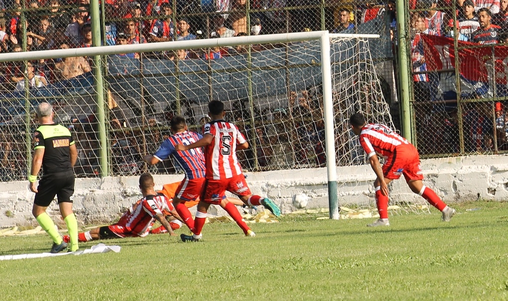 El equipo “Santo” se puso en ventaja con un lateral por derecha que le quedó a Walter Luján que enganchó y definió al primer palo, a los 23 minutos.