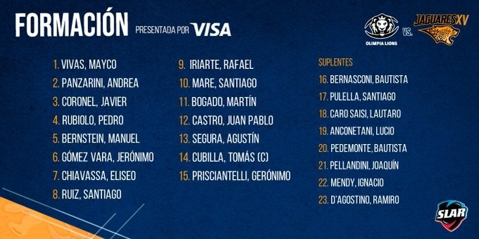 Las formaciones de Jaguares XV vs. Olimpia Lions